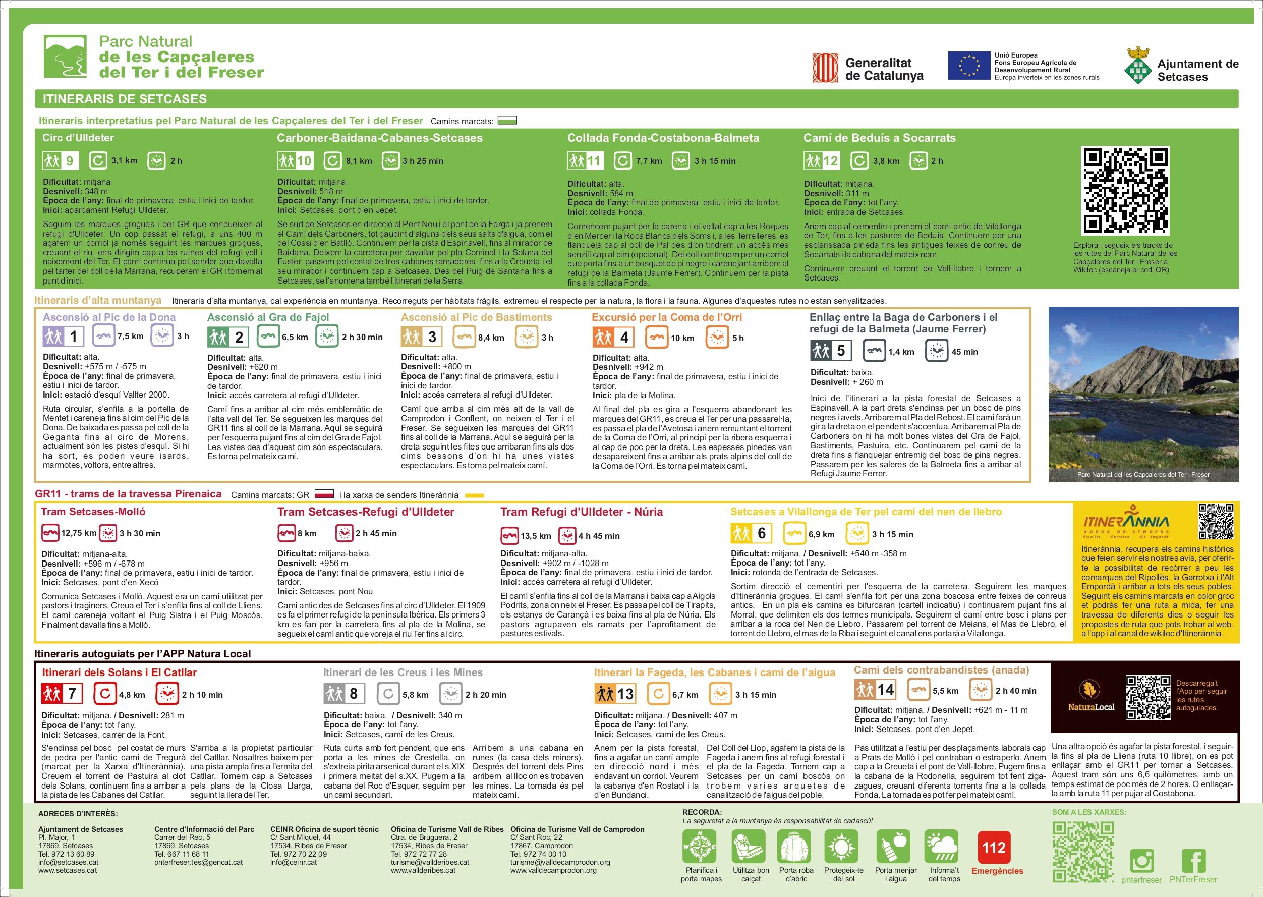 Amb aquest ajut, l’Ajuntament de Setcases ha pogut actualitzar el mapa de senders del municipi i del Parc Natural de les Capçaleres del Ter i del Freser.