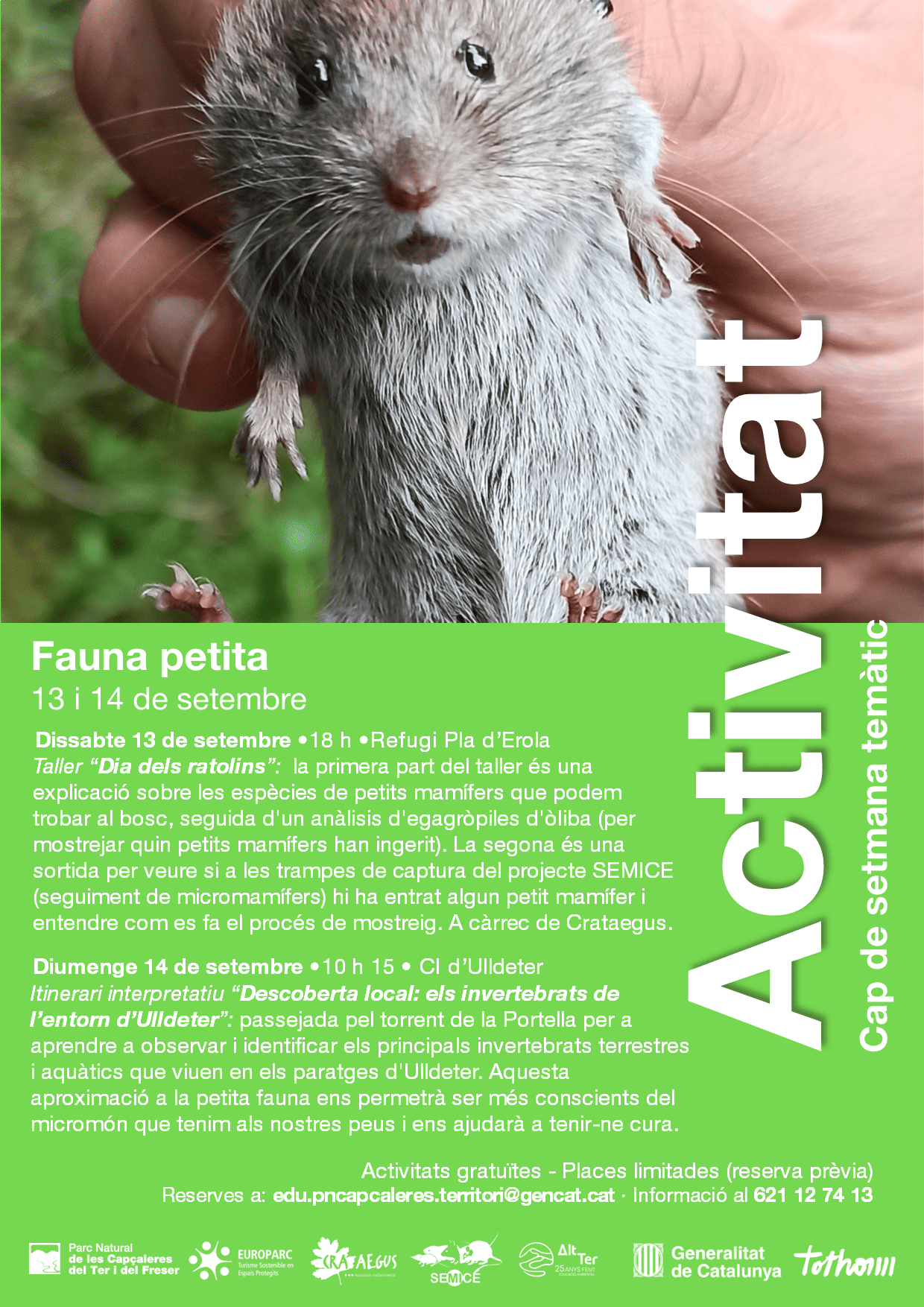 El proper cap de setmana del 13 i 14 de setembre, el Parc us convida al cap de setmana temàtic dedicat a la Fauna petita que es durà a terme al refugi del Pla de l’Erola (Ribes de Freser) i a Ulldeter, respectivament. Dissabte 13 de setembre de 2025: Dia dels ratolins o farem una aproximació […]