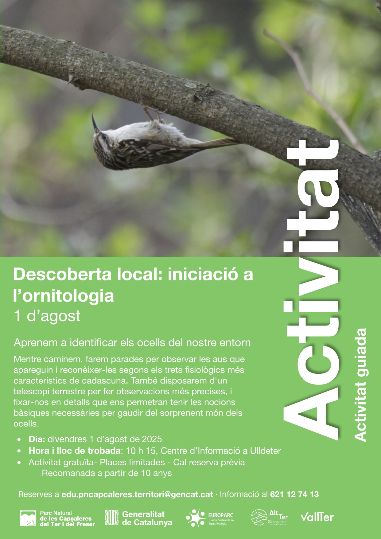 DIvendres 1 d’agost a les 10:15h, oficina del Parc Natural a Vallter 2000 Un recorregut d’iniciació a l’ornitologia on descobrirem diferents espècies i aprendrem a identificar-les. Mentre caminem, farem parades per observar les aus que apareguin, i les reconeixerem amb l’ajuda d’una guia d’observació, una eina molt útil per diferenciar els trets fisiològics més característics […]