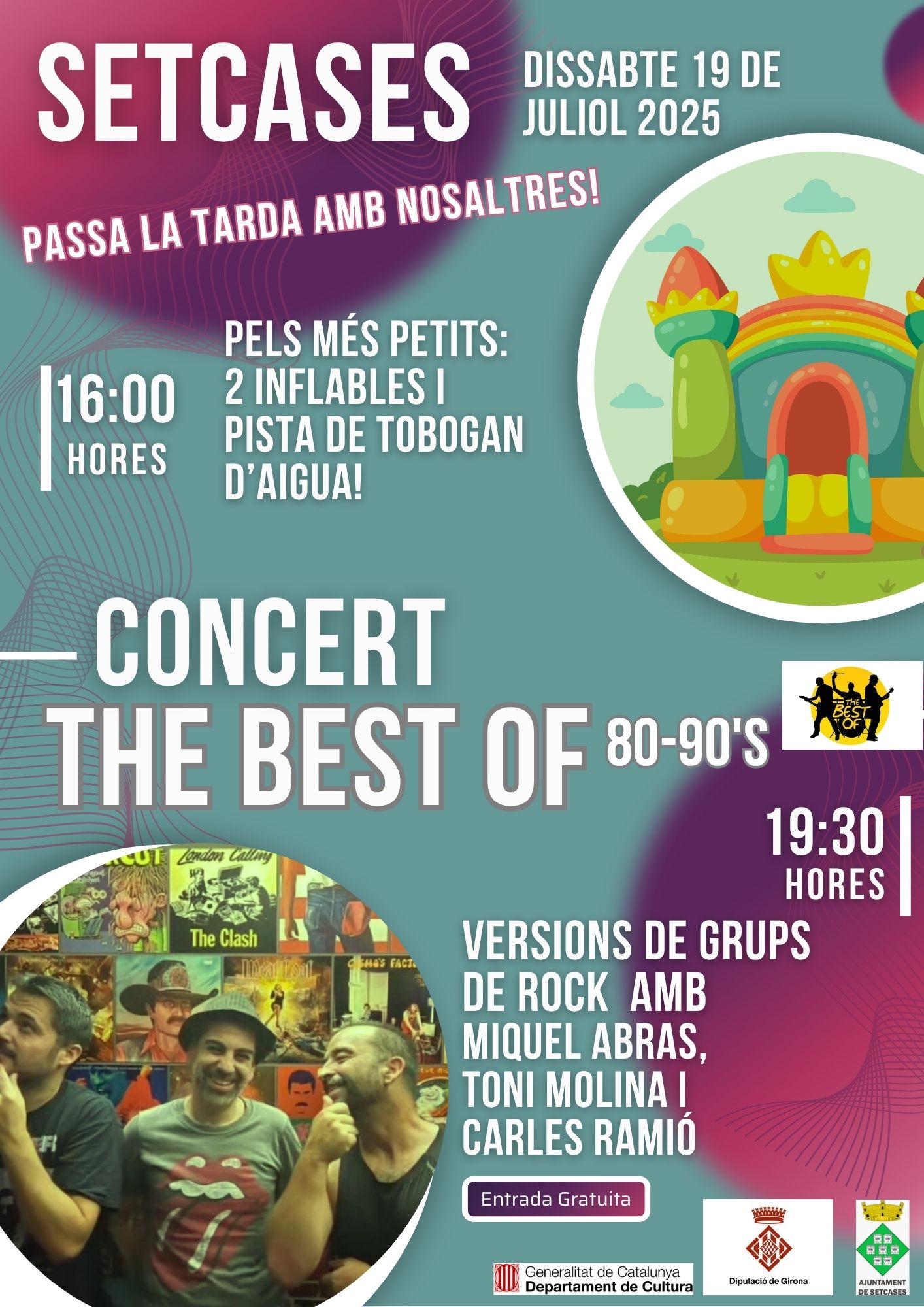 Dissabte 19 de juliol, podràs gaudir d’una tarda d’estiu a Setcases. A les 16h: inflables per la mainada A les 19:30h Actuació del grup: The Best of 80-90′ amb Miquel Abras.