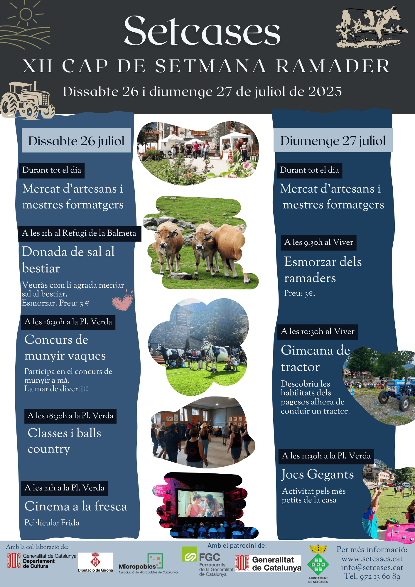 La XII edició del Cap de Setmana Ramader a Setcases, torna amb l’objectiu de donar a conèixer la donada de sal al bestiar, una pràctica habitual entre tots els ramaders d’alta muntanya. També es podran gaudir d’esmorzars de germanor, ball country, concurs de munyir, gimcana de tractor, jocs gegants, i un petit mercat d’artesans i […]