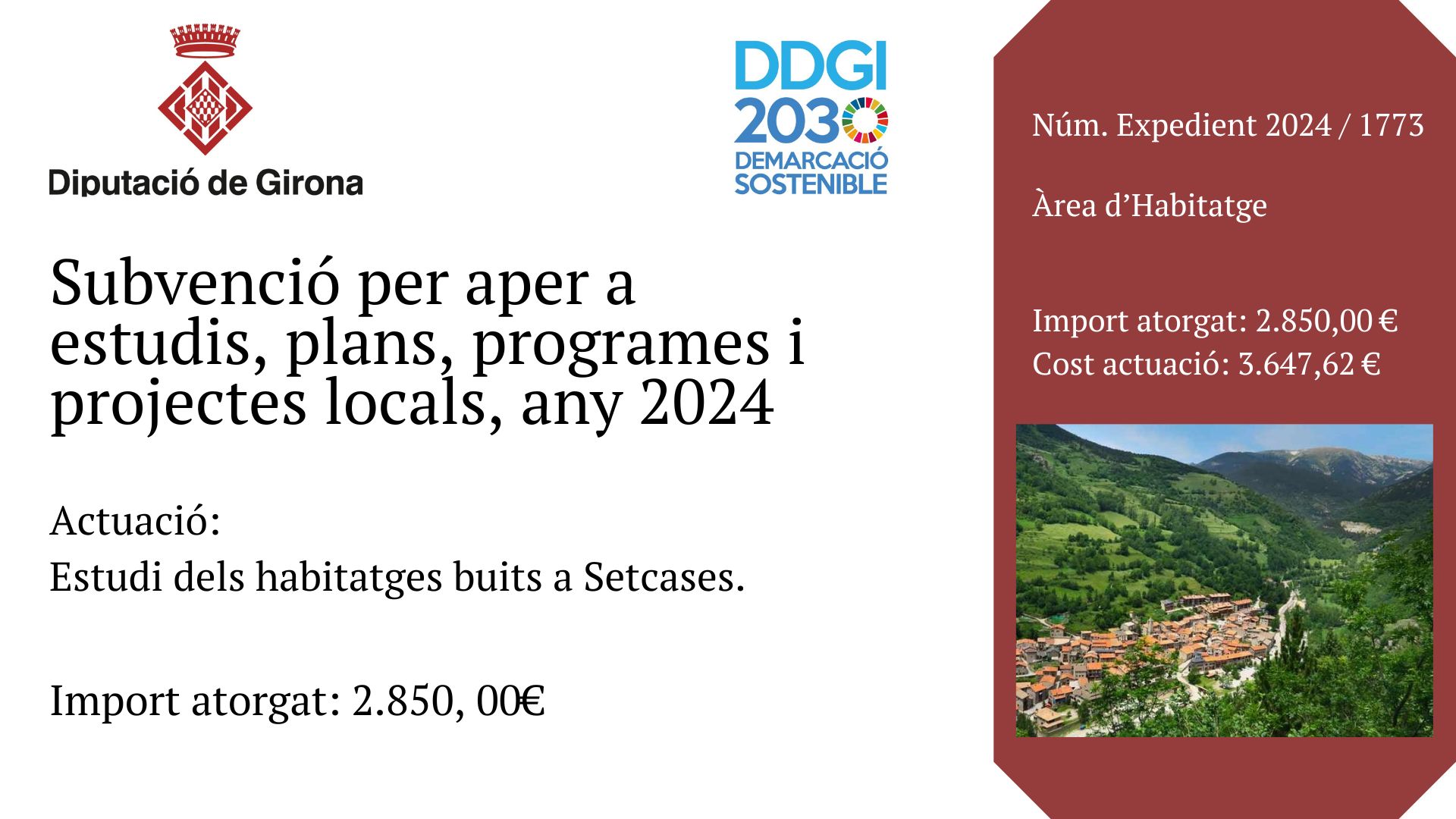 • Atorgament de Subvenció de la Diputació de Girona per a la realització d’un Estudi dels Habitatges buits de Setcases