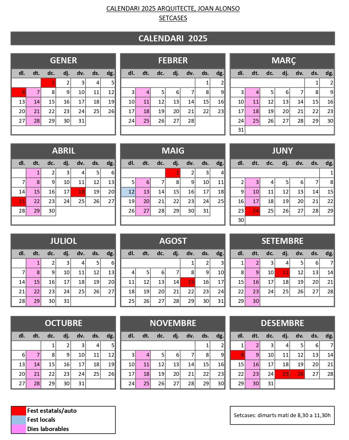Horari d’atenció: Dimarts de 8:30h a 11:30h. Segons calendari publicat amb cita prèvia.