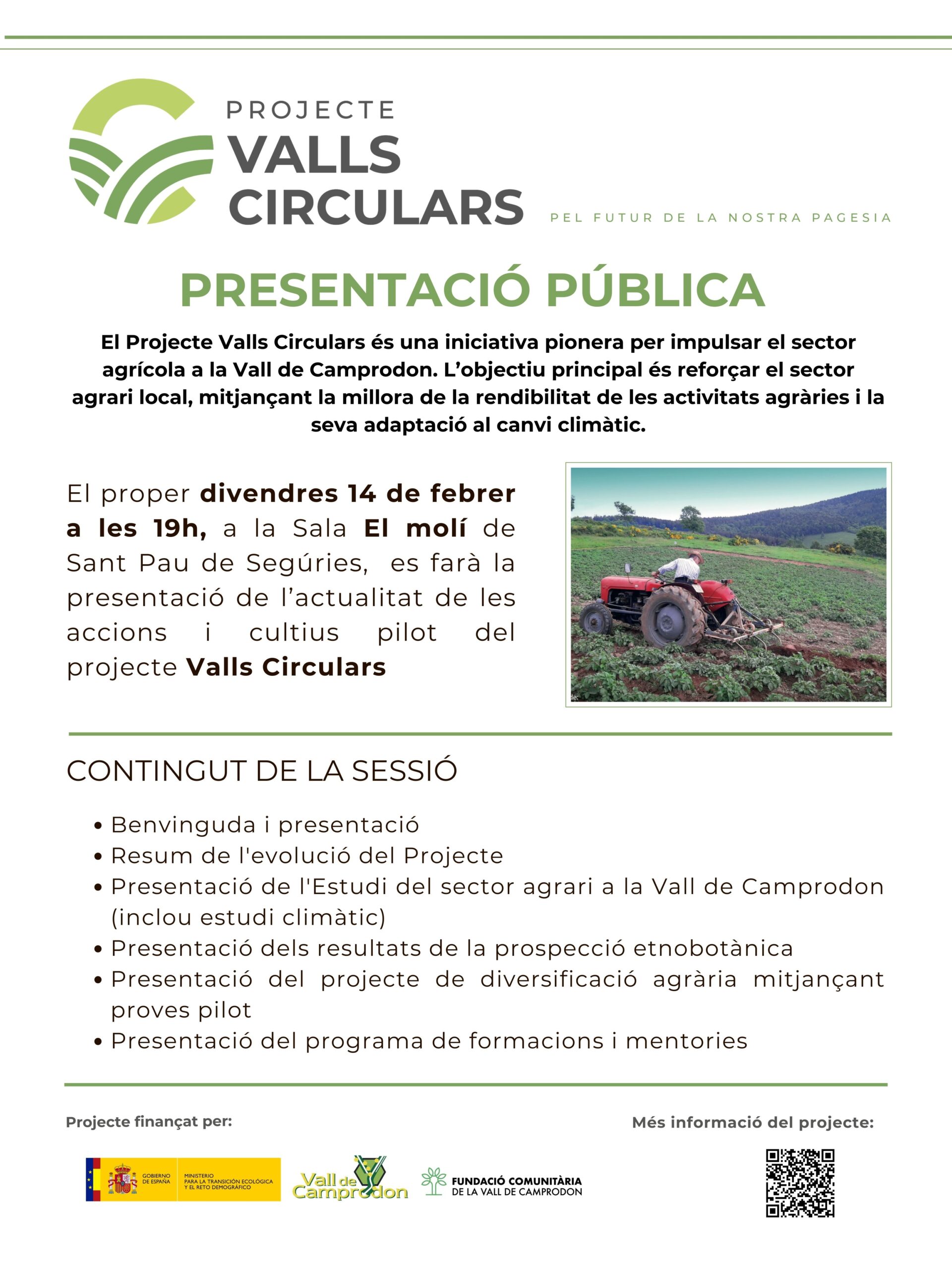 El Projecte Valls Circulars és una iniciativa que treballa per impulsar el futur de la nostra pagesia i agricultura, amb els objectius principals de millorar la rendibilitat de les activitats agràries i adaptar les activitats agràries al canvi climàtic.