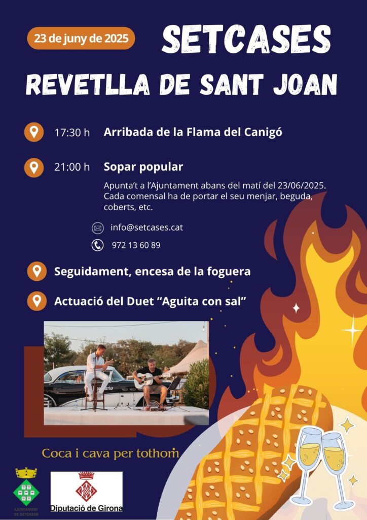 – Seguidament, coca i cava per tothom, encesa de la foguera i actuació en directe del duet “Agüita con Sal”!