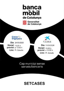 Actualitat, Agenda Servei banca mòbil a Setcases: mes de març 04/03/2026 - 31/03/2026 < Entrada Anterior