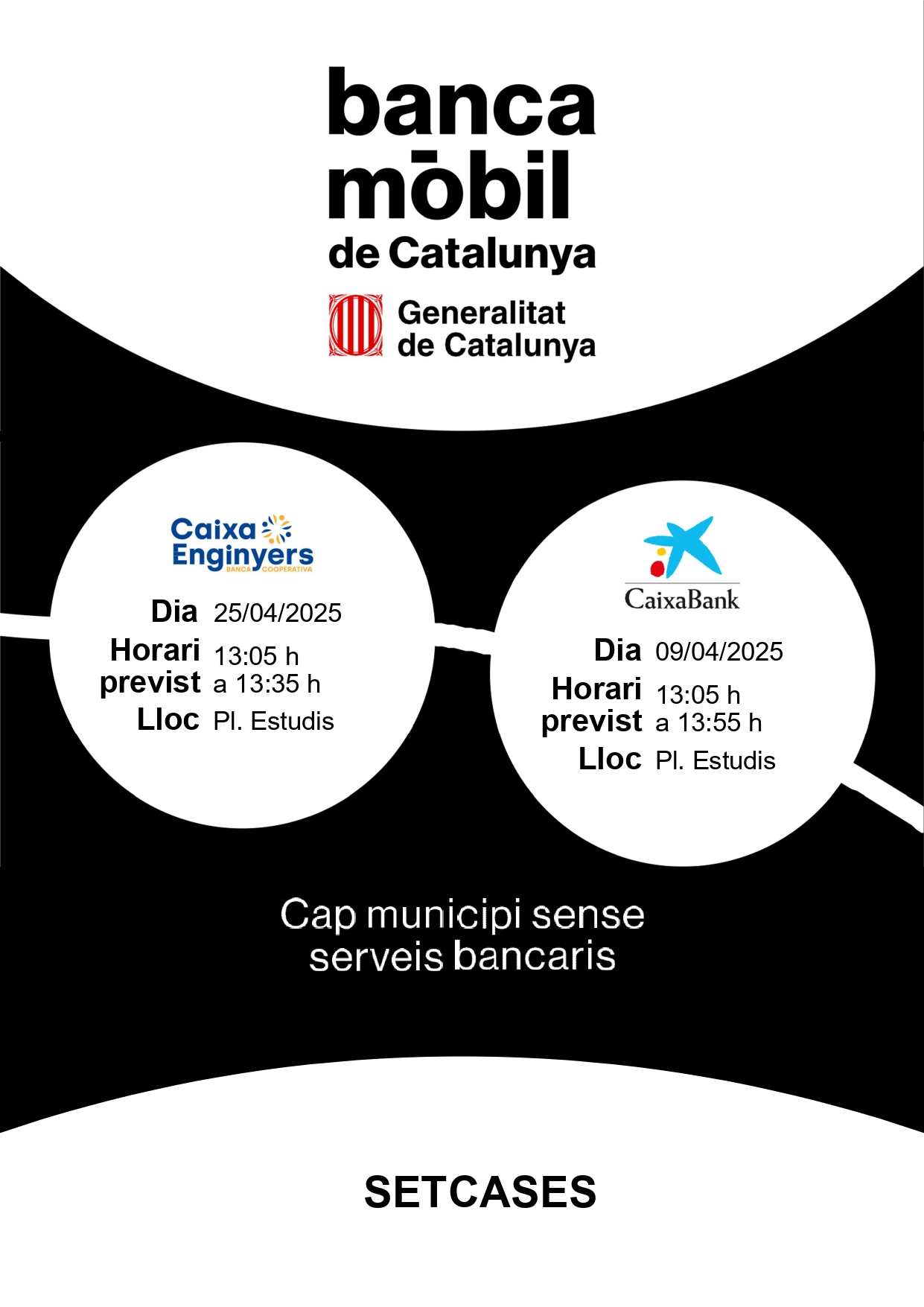 | Setcases | Ripollès | 9 Abril | 13:05 h | 13:55 h | Plaça dels Estudis | CaixaBank |