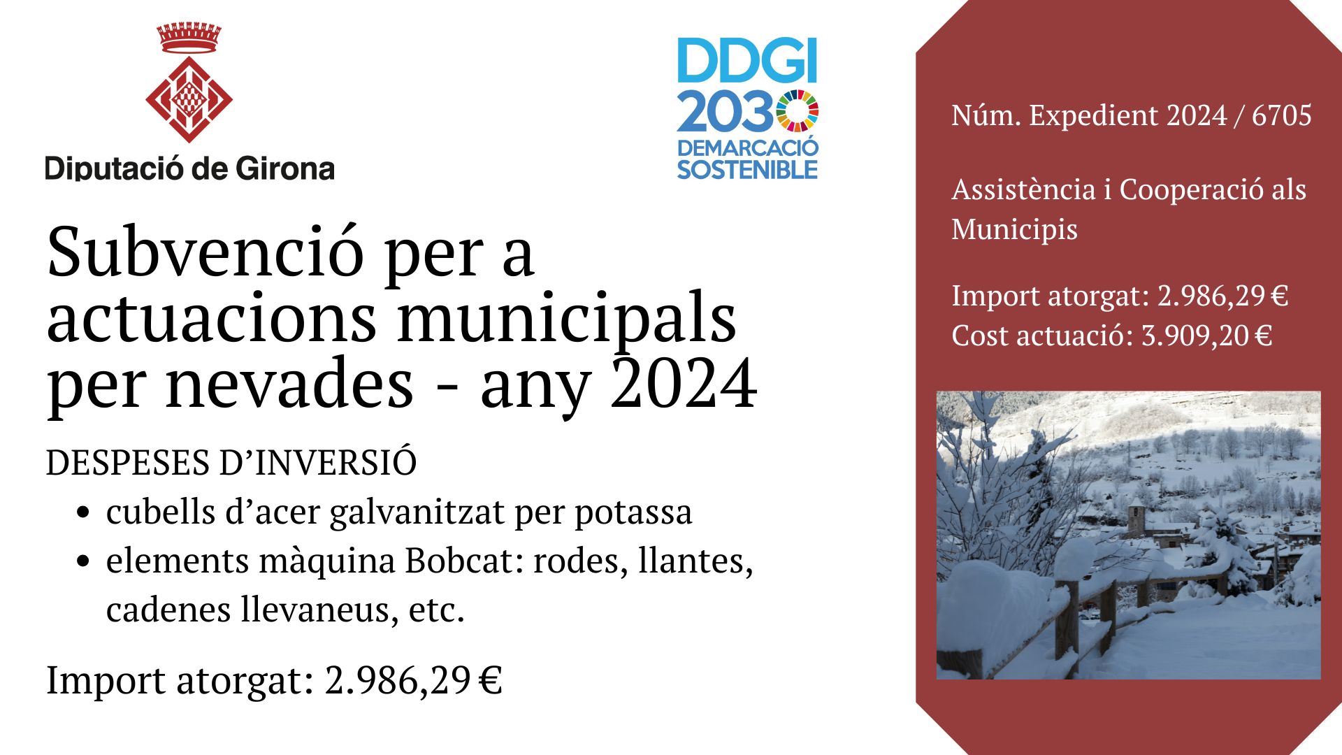 Subvenció per a actuacions municipals per nevades, any 2024. Despeses d’inversió.